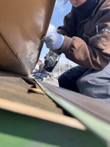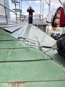 この写真は、屋根を起こし錆て穴になった屋根の上に重ねる施行のカバーアップルーフです。